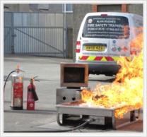 This is followed by a practical session where delegates discharge fire extinguishers of the type that are applicable to their workplace, to extinguish real fires. The fire scenarios are conducted using environment acceptable gas fired simulators in a safe and controlled manner. Scenarios include flammable liquid fire, bin/pan fire and TV/PC monitor. Risk assessments for ‘hot training’ are provided. A clear outside area approximately 5 metres x 5 metres such as a car park or yard which is clear of combustible materials should be made available for the above training.